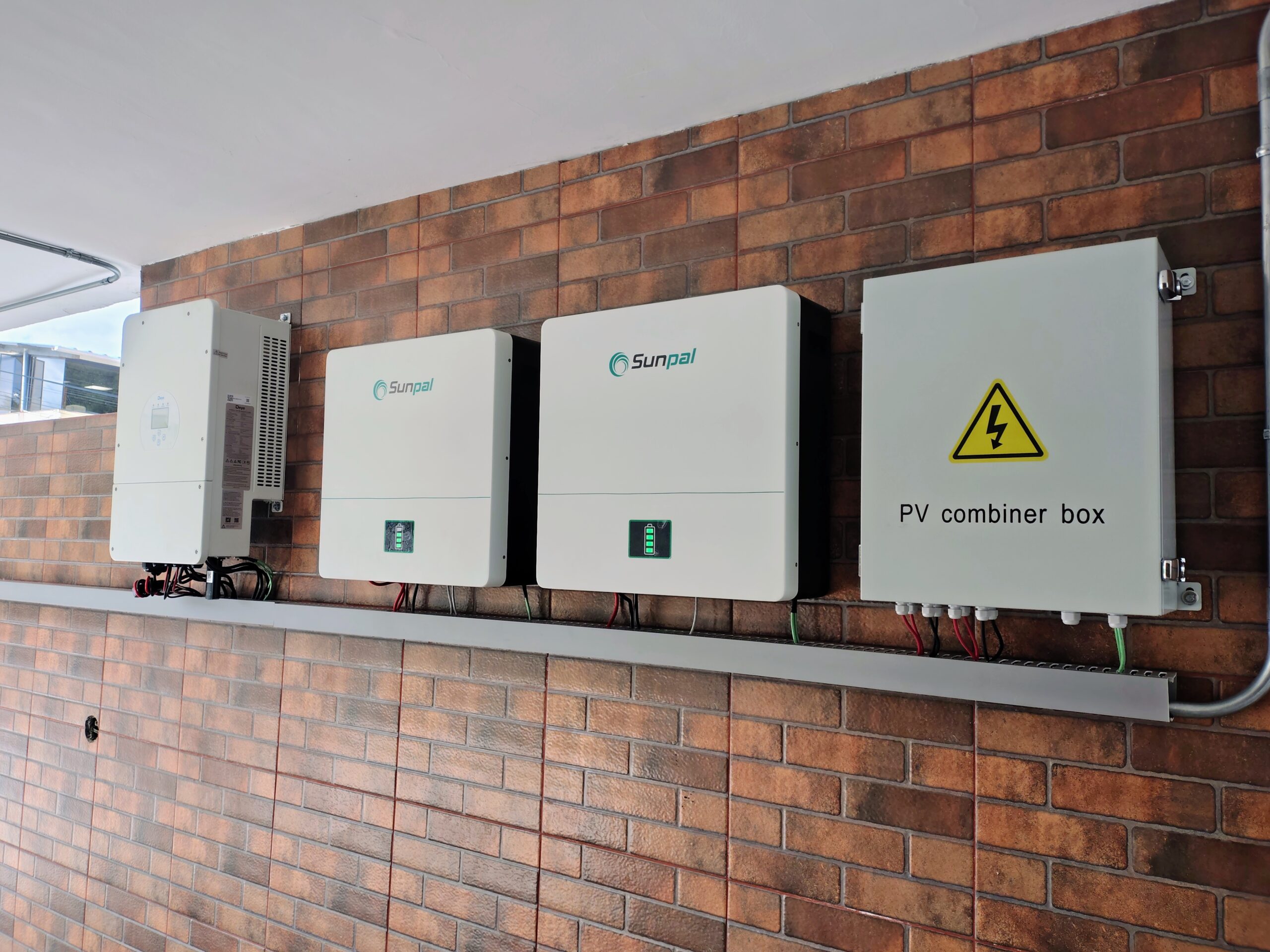 El sistema utiliza un inversor híbrido marca Deye de 8 kW, una de las marcas más confiables del mercado, que gestiona de forma inteligente la energía solar, la red eléctrica y las baterías para que siempre tengas electricidad disponible cuando la necesitas.
